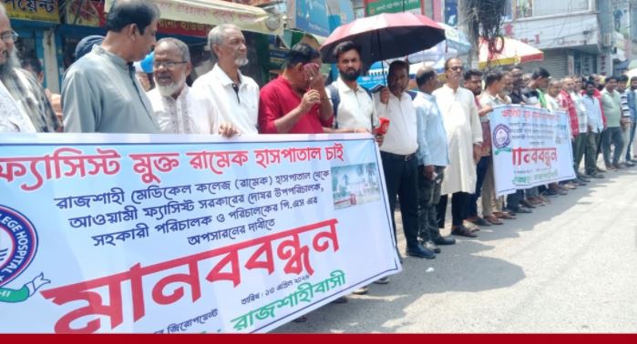রামেক হাসপাতালকে ‘ফ্যাসিস্ট ও সিন্ডিকেট মুক্ত’ করার দাবিতে মানববন্ধন