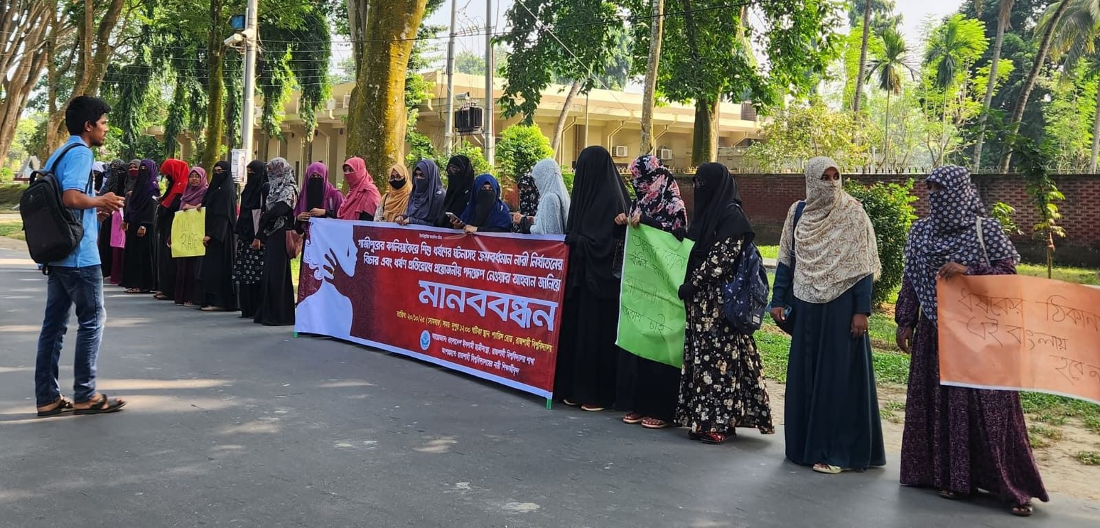 গাজীপুরে শিশু ধর্ষণের ঘটনায় রাবি ছাত্রী সংস্থার মানবনন্ধন