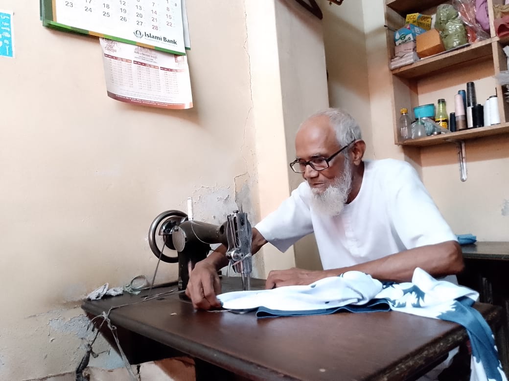 ৭৯ বছর বয়সেও সুনিপুণ দক্ষতায় সেলাই মেশিন চালাচ্ছেন সাইফুল