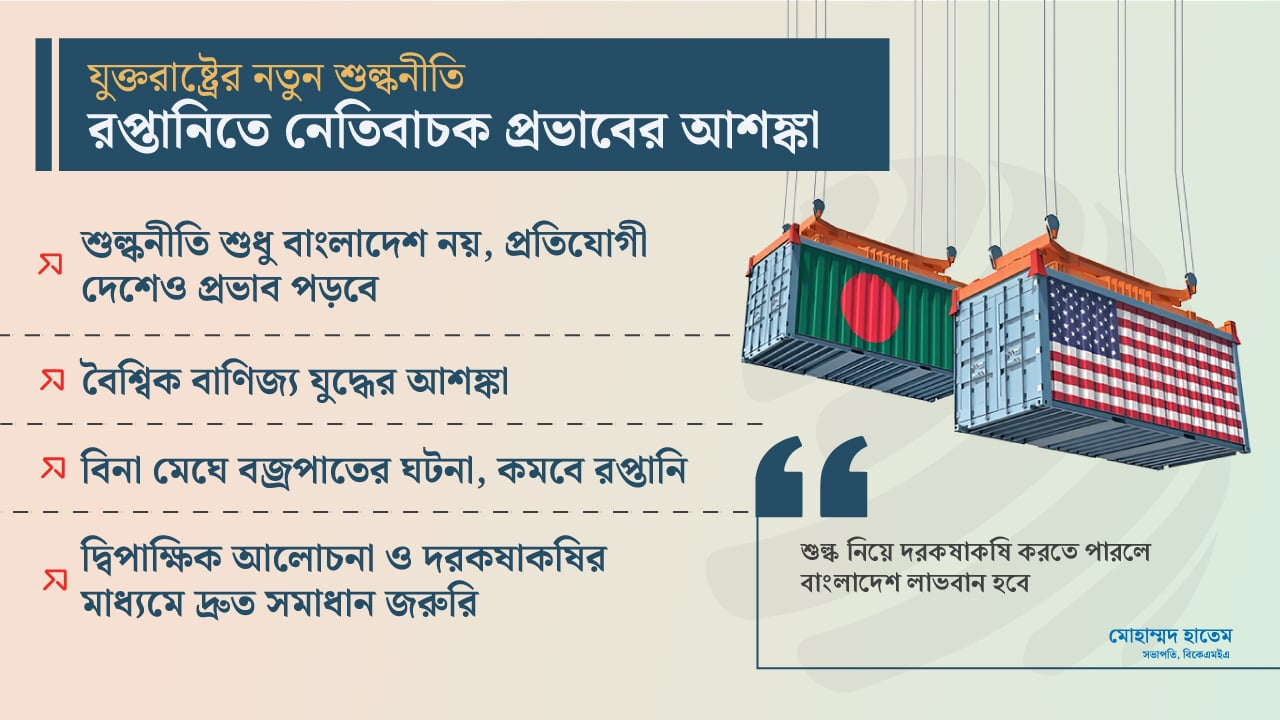 মার্কিন যুক্তরাষ্ট্রের পক্ষ থেকে ৩৭ শতাংশ শুল্ক আরোপের সিদ্ধান্তের ফলে বাংলাদেশের ৪০ বিলিয়ন ডলারের তৈরি পোশাক রপ্তানি শিল্পে বড় ধরনের