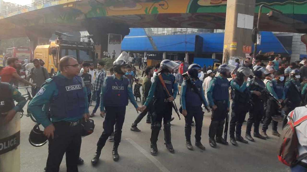শিক্ষার্থীদের ঘিরে রেখেছে পুলিশ, সামনে আনা হয়েছে জলকামান