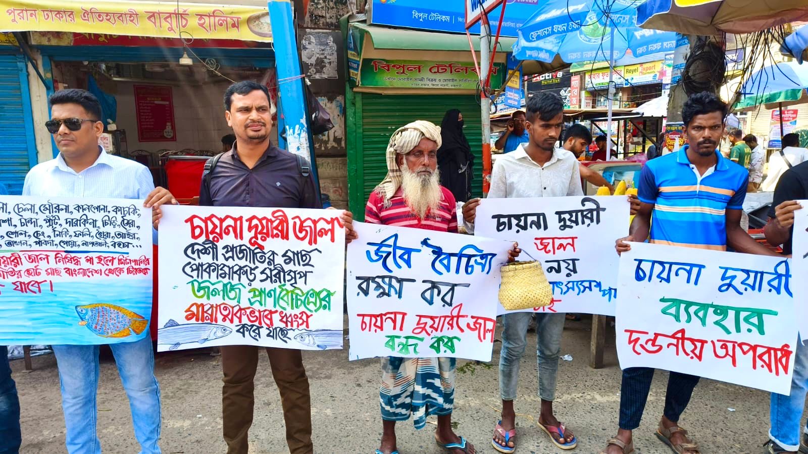 চায়না দুয়ারি জালসহ পরিবেশ ও জীববৈচিত্র্যবিধ্বংসী মাছ ধরার সরন্জাম বন্ধের দাবিতে মানববন্ধন